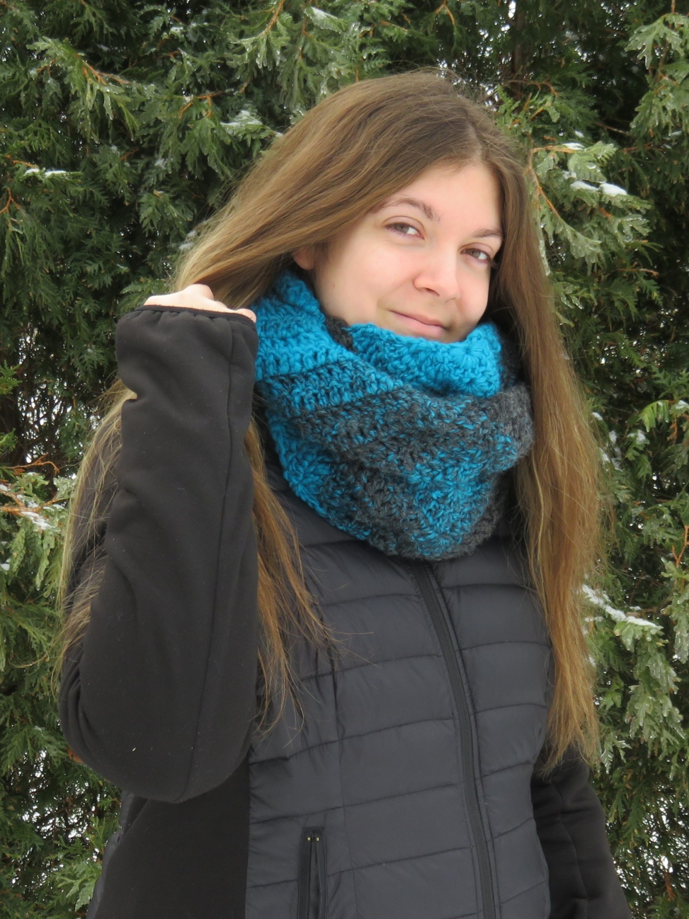 Mystic is a super fun infinity scarf that you can make using only one ball of yarn! We like it.