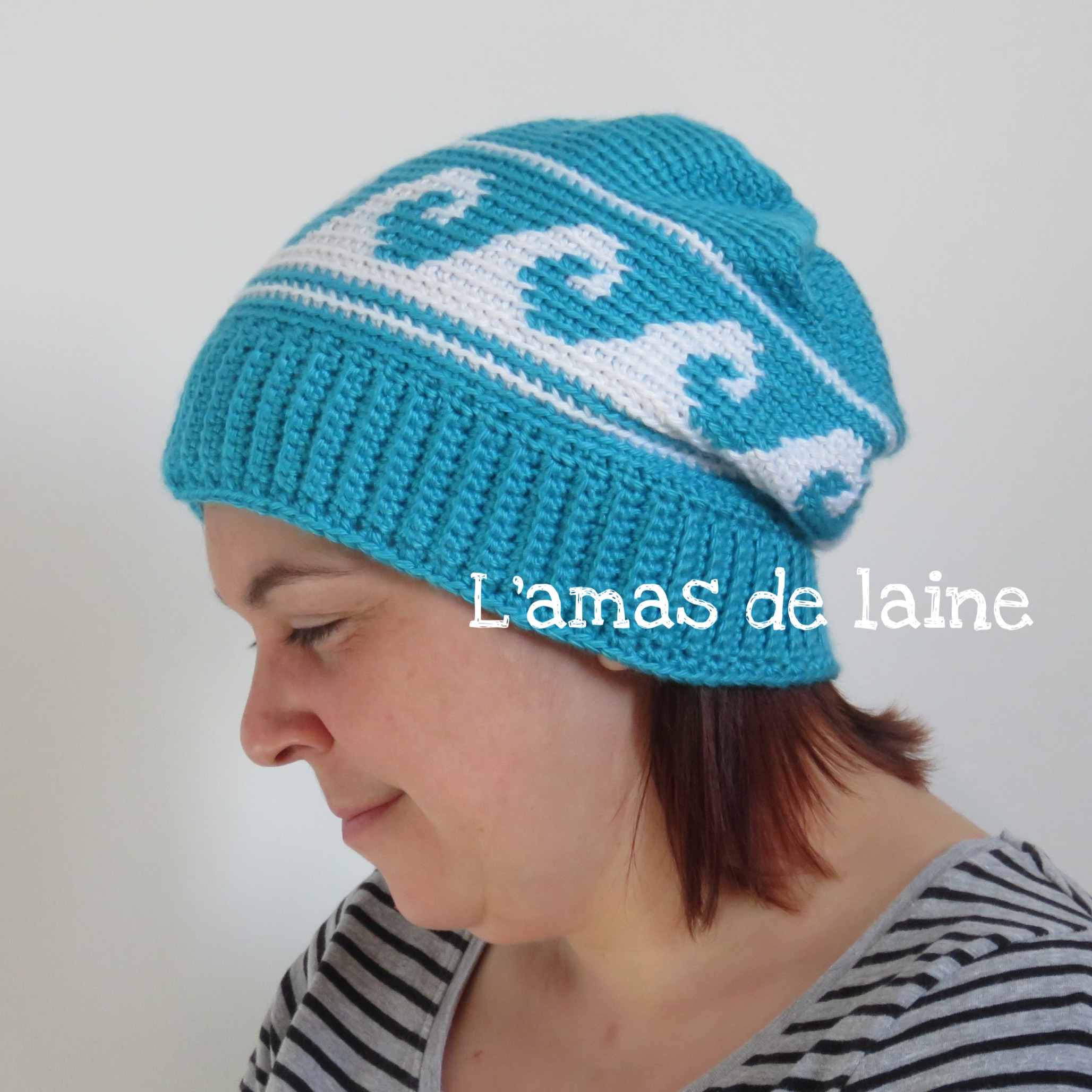 Océanie is a slouchy type hat that uses the crochet tapestry technique. No worries, the pattern includes tutorials to guide you.