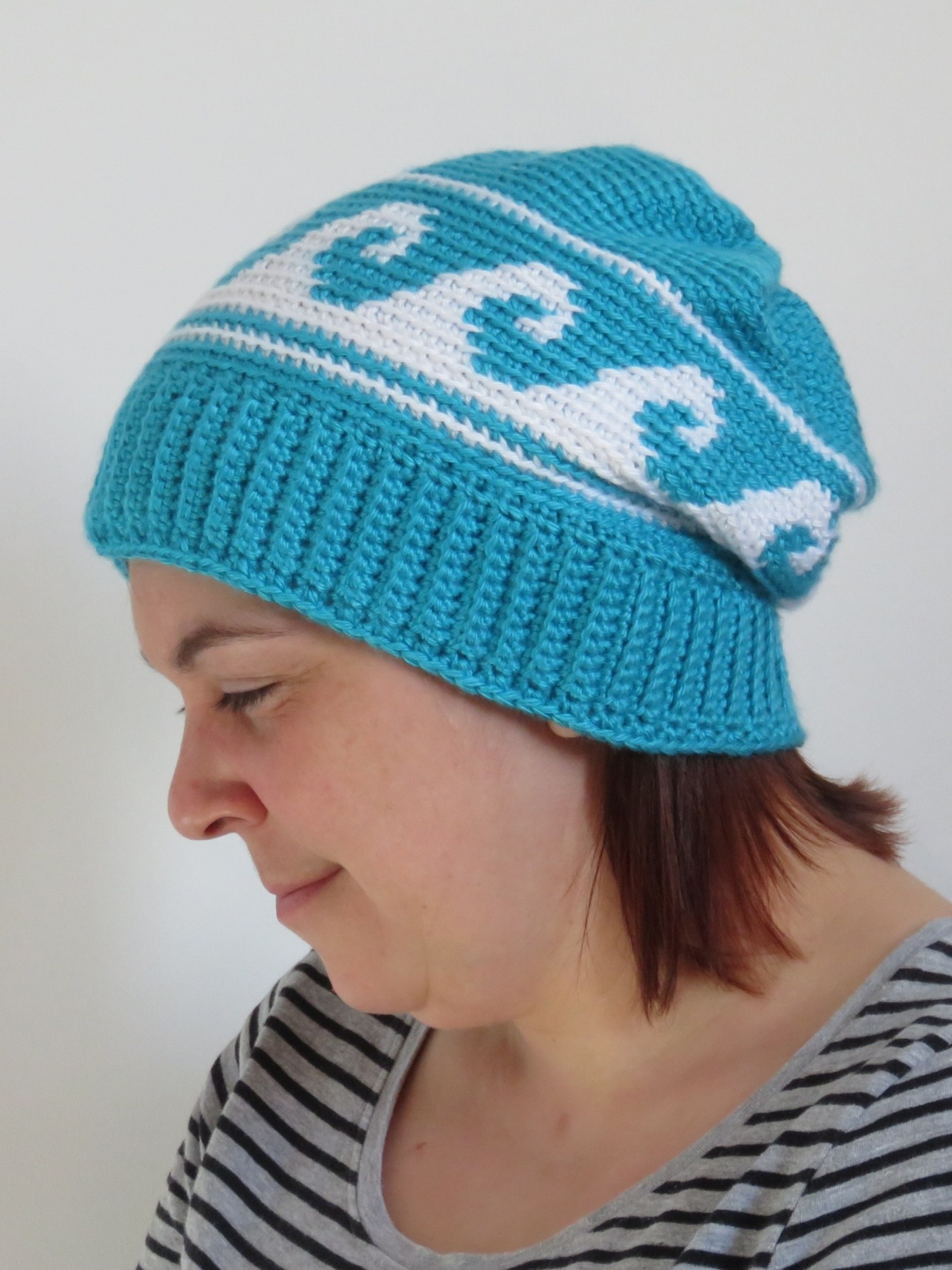 Océanie is a slouchy type hat that uses the crochet tapestry technique. No worries, the pattern includes tutorials to guide you.